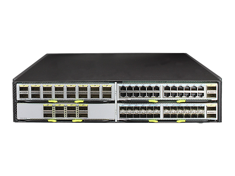 CE8860,支持32個(gè)100GE、64個(gè)40GE、128個(gè)25GE或128個(gè)10GE接口,通過插卡靈活組合,構(gòu)建靈活高密接入及匯聚能力;